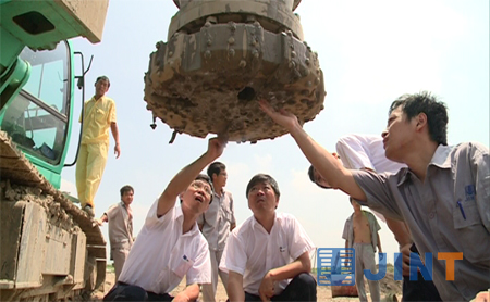 酒店樁基施工中,施工方發(fā)現(xiàn)坑口附近地下巖層硬度極高(抗壓強(qiáng)度120Mpa以上),普通施工方法幾乎不可能打到設(shè)計要求的32m樁孔深度。金泰SH25H鉆機(jī)的進(jìn)駐使不可能成為可能,鉆進(jìn)速度達(dá)到了每小時1米左右。