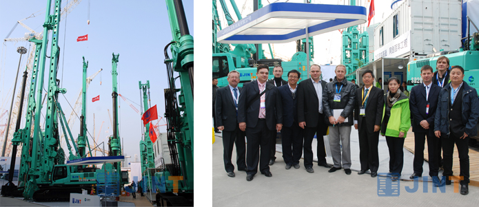 本屆展會,上海金泰展出的設(shè)備有:SH系列大三角結(jié)構(gòu)旋挖鉆機(jī),SD系列四連桿機(jī)構(gòu)旋挖鉆機(jī),開挖深度達(dá)到100米的SG60型地連墻抓斗,世界首創(chuàng)、鉆桿可伸縮、動力頭中置的M系列三軸鉆機(jī)以及使用CSM工法、適用于復(fù)雜地層C80液壓銑削攪拌機(jī)。 豐富多樣的產(chǎn)品吸引了100多位外商參觀金泰展位,他們分別來自俄羅斯、印度、巴西、土耳其、美國、澳大利亞、越南、埃及等國家。參觀過程中,世界領(lǐng)先的技術(shù)、完美的品質(zhì)及有競爭力的價(jià)格激起了外國客戶強(qiáng)烈的購買意向,甚至還有一些外國客戶有意向作金泰產(chǎn)品在本國的經(jīng)銷商。
