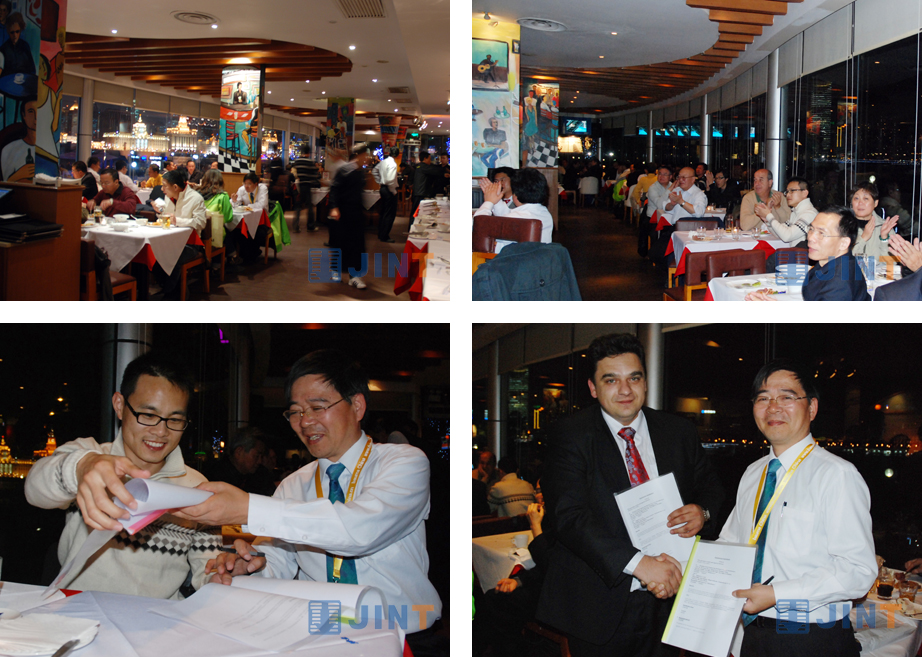 展會期間,上海金泰工程機(jī)械公司為答謝廣大國外客戶長期以來的支持,邀請國外客戶參加在外灘天水戀意大利餐廳舉辦的晚宴,餐廳晚宴上均是金泰的老客戶,借寶馬展這個(gè)東風(fēng),齊聚一堂,共同見證金泰公司的輝煌歷程。伴著和諧的音樂和璀璨的燈光,晚會達(dá)到高潮。當(dāng)時(shí)有兩國客戶分別和金泰簽訂了合作意向書,為晚會增添光彩。