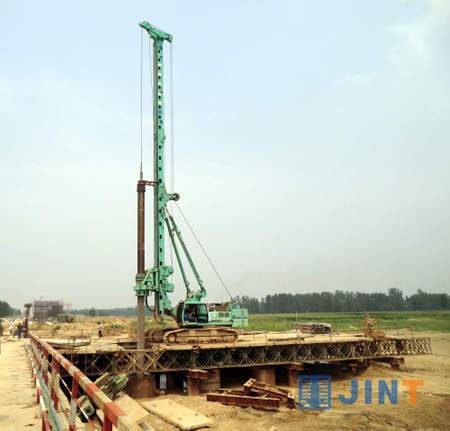針對該樁基工程特點,施承建單位中鐵大橋局二公司制定了周密的施工計劃,并選擇了上海金泰生產(chǎn)的SH36W多功能鉆機進行施工。SH36W是采用大三角結(jié)構(gòu)桅桿結(jié)構(gòu)的大型旋挖鉆機,配置了特制5層摩阻鉆桿、高抗壓抗形變底盤,設(shè)備穩(wěn)定性強、施工能力高。在將軍渡黃河特大橋復(fù)雜的施工環(huán)境下,該設(shè)備創(chuàng)造了單樁21小時成孔的施工速度,創(chuàng)造了國內(nèi)超大、超深樁的施工的新記錄,為將軍渡黃河特大橋工程按期完成提供了保證,得到施工單位、業(yè)主單位的肯定和認(rèn)可。