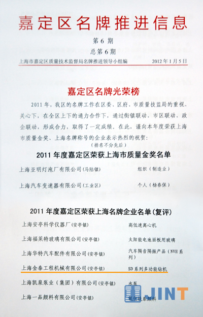 此次SD系列多功能鉆機(jī)再次被評(píng)為“上海名牌”產(chǎn)品,既是對(duì)公司多年來(lái)不懈努力的褒獎(jiǎng),更是對(duì)上海金泰的有力鼓舞,公司將一如既往地以“共筑堅(jiān)實(shí)基礎(chǔ)、同創(chuàng)百年工程”經(jīng)營(yíng)理念,為國(guó)家和社會(huì)創(chuàng)造更多價(jià)值。