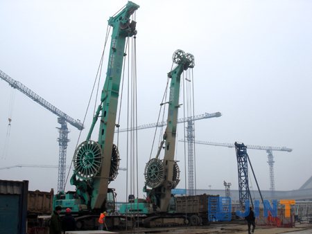 據(jù)工程指揮部有關人士介紹,濱海國際機場交通樞紐工程是天津市“十二五”期間重點建設項目,項目建成后將成為天津集航空、城際鐵路、軌道交通、公路等多種交通方式為一體的綜合性交通中心。由于項目工量大、工期緊、工程質量要求高,所以年初開工時,施工單位就調用了國內外多個廠家的基礎施工設備,金泰SG系列抓斗憑借技術領先、性能卓越、品牌口碑俱佳等優(yōu)勢,以進場數(shù)量和型號最多、施工綜合效率最高的評價結果令競爭對手黯然失色,成為這場“競賽”的大贏家。據(jù)統(tǒng)計,目前已有8臺SG抓斗在現(xiàn)場施工,型號涵蓋金泰大功率抓斗的全部主流產(chǎn)品,隨著工程進度的加快,后續(xù)還將有設備陸續(xù)進場。