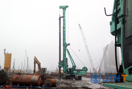 據(jù)負(fù)責(zé)現(xiàn)場(chǎng)施工的企業(yè)負(fù)責(zé)人介紹,該項(xiàng)目去年年底開(kāi)工初期,先后有國(guó)內(nèi)外十余家廠商、數(shù)十臺(tái)旋挖設(shè)備陸續(xù)進(jìn)場(chǎng)試樁,后或因設(shè)備型號(hào)不匹配或綜合效率無(wú)法滿足施工要求,相繼悵然離場(chǎng)。上海金泰的主流旋挖“力挫群雄顯身手,大浪淘沙始到金”,以其施工效率、入巖能力和性能穩(wěn)定等優(yōu)勢(shì),令同行設(shè)備望塵莫及、“望金興嘆”,目前,在現(xiàn)場(chǎng)的三臺(tái)SH30和一臺(tái)SD28自開(kāi)工以來(lái)以每臺(tái)每日兩樁的效率打下近900根樁徑800mm-1200mm、樁深40m的樁孔。