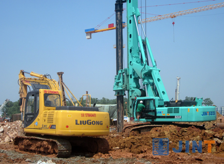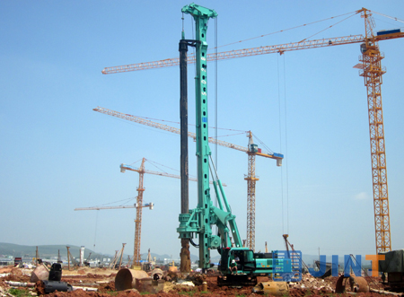 吳圩國際機(jī)場南寧市對外的形象窗口之一,承擔(dān)著極為重要的航空交通責(zé)任,是南寧市重大基礎(chǔ)設(shè)施項目之一。廣西壯族自治區(qū)、南寧市政府都該項目建設(shè)十分重視,專門成立了南寧機(jī)場擴(kuò)建項目工程指揮部,全程跟蹤,協(xié)調(diào)、指導(dǎo)和監(jiān)督,全力推進(jìn)項目建設(shè)。在這一項目中,基礎(chǔ)工程是決定項目進(jìn)度的關(guān)鍵要素,要在紅黏土、密實黏土、微風(fēng)化白云質(zhì)石灰?guī)r的地層條件下進(jìn)行最深達(dá)24m樁基施工,巖層最大硬度超過10Mpa。這對鉆進(jìn)施工技術(shù)和旋挖鉆機(jī)性能都是嚴(yán)峻考驗。在上海金泰現(xiàn)場服務(wù)小組7×24全程保障下,SD28鉆機(jī)不負(fù)眾望,與同工地施工的柳工915D挖掘機(jī)一起,為保障這一重點工程按期完工在日夜運作,并交出了一份滿意的答卷,以單樁2-4小時的效率,遠(yuǎn)超同工地其他品牌產(chǎn)品,贏得鉆機(jī)用戶、業(yè)主單位的好評,在紅土地上又一次創(chuàng)造了金泰綠的佳績。