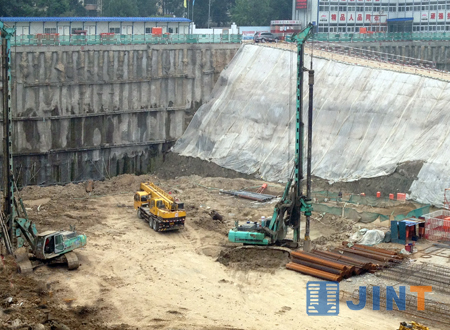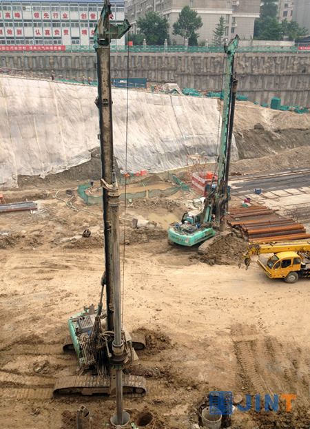 這是北京燕翔飯店改擴(kuò)建工地,3臺(tái)上海金泰SD12旋挖鉆機(jī)運(yùn)作不息,為這座超五星級(jí)酒店按時(shí)完工進(jìn)行樁基礎(chǔ)施工。SD12是上海金泰工程機(jī)械有限公司研制的小型旋挖鉆機(jī)產(chǎn)品,自2007年上市以來(lái)累計(jì)制造銷售近100臺(tái),由于其整機(jī)操作靈活、施工效率高、維護(hù)方便,深受國(guó)內(nèi)外用戶青睞和好評(píng),在各類市政工程、工民建等的中小型樁基礎(chǔ)施工中發(fā)揮著主力軍作用,展示著上海金泰產(chǎn)品品質(zhì)和企業(yè)的實(shí)力。
