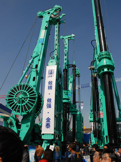 2010年11月23日,亞洲工程機械與建材機械行業(yè)最具權(quán)威性的專業(yè)博覽會,第五屆中國國際工程機械、建材機械、工程車輛及設(shè)備博覽會(bauma China 2010)于上海新國際博覽中心隆重開幕。上海金泰工程機械有限公司作為地下施工設(shè)備的知名生產(chǎn)商,在位于室外 的展臺上向全球用戶展示了包括SG60液壓連續(xù)墻抓斗、SG46液壓連續(xù)墻抓斗、C80液壓銑削攪拌鉆機、SH25C多功能鉆機、SD28多功能鉆機、SH36多功能鉆機、SD20A多功能鉆機、ZKD85/M85多軸孔鉆機等多款經(jīng)典設(shè)備。