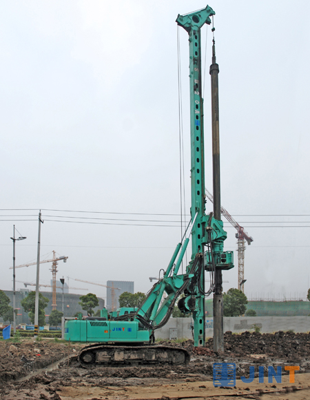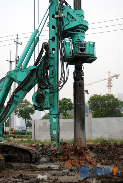 據(jù)現(xiàn)場(chǎng)工程人員介紹,宜興農(nóng)商行大廈設(shè)計(jì)高度118米,地面23層,地下2層,地表下1-20米是淤泥層、20-30米處為強(qiáng)風(fēng)化泥巖。金泰SD20A型多功能鉆機(jī)主機(jī)搭載該鉆具,平均2小時(shí)可完成一根30米深的樁孔施工。在現(xiàn)場(chǎng)施工的旋挖鉆機(jī)施工效率為4小時(shí)/樁,工程鉆機(jī)為24小時(shí)/樁。