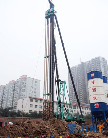 日前,從山西太原南海集團(tuán)工程部傳來(lái)消息,上海金泰最新推出的ZKD85-5五軸鉆機(jī)在其公元時(shí)代城項(xiàng)目樁基礎(chǔ)工程試樁首秀時(shí)表現(xiàn)不凡,以平均65分鐘的速率完成單幅2.4mx26m(成墻寬2.4米,深26米)的攪拌墻施工,與傳統(tǒng)三軸攪拌設(shè)備相比,施工效率提升一倍以上,得到了業(yè)主高度贊譽(yù)。