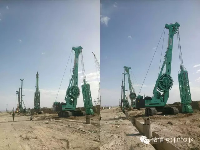 該項(xiàng)目位于新疆哈密地區(qū),防滲墻總方量為136000m3,槽寬800mm,平均深度為52m,目前有7臺(tái)上海金泰SG抓斗投入施工;