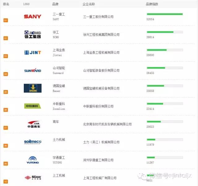 自2009年該榜單首次推出,至今已有七年。該榜單每年的年中和年底相繼發(fā)布。從今年的“樁工品牌關(guān)注度排行榜”中可以看出,與2014年相比,樁工行業(yè)市場(chǎng)品牌排行變化較小,三一重工和徐工機(jī)械依然分列第一和第二,上海金泰則由去年第四上升了一位,進(jìn)入前三,這也是上海金泰首次進(jìn)入該榜單的三甲。