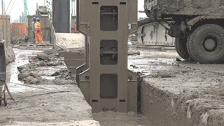 該地段地層條件如下,地面以下0~26米為土層、26~48米為細(xì)砂層、48~50米為鐵板沙層、50~52米為卵石層、52~65米卵石夾砂層、65~70米為砂層、70~76米為巖層。此項(xiàng)目地下連續(xù)墻深度為76米、厚為1.2米。據(jù)現(xiàn)場(chǎng)工作人員反饋,9月10日SG90第一次試抓直接抓到72米入巖2米,耗時(shí)17小時(shí),之后在不同工況下,深度為50米左右的槽平均耗時(shí)5.5小時(shí)完成,其中一鍵抓槽功能與手持操作效率相持平,解放雙手的同時(shí)保證成墻質(zhì)量。目前該設(shè)備與金泰雙輪銑“抓銑結(jié)合”已完成11幅厚為1.2米、長為7.2米的地連墻,較同場(chǎng)設(shè)備整體效率提升將近30%左右。同時(shí)該設(shè)備已運(yùn)行1000多小時(shí),始終表現(xiàn)穩(wěn)定可靠、特別是入巖能力強(qiáng),提升和下放速度快,施工效率高,為期參加施工的項(xiàng)目提供了強(qiáng)有力的保障。