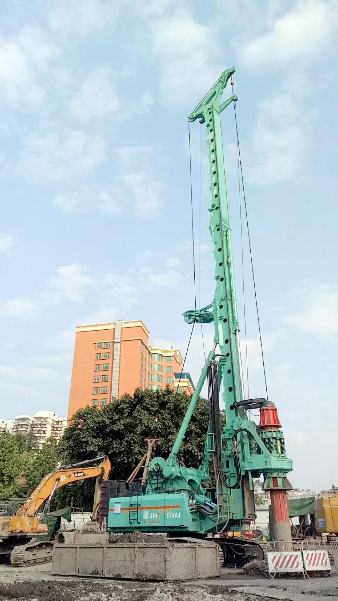 廣州白云站(棠溪站)于2019年1月開工,是集各種方式一體化換乘的綜合交通樞紐。此次工程量大,施工難度大,技術(shù)要求高且項(xiàng)目地層極其復(fù)雜,0~5米回填層,5~12米中粗砂層,12~13米中風(fēng)化灰?guī)r,13~15米溶洞,15~24米微風(fēng)化灰?guī)r,24~27米溶洞,27~46微風(fēng)化灰?guī)r。據(jù)現(xiàn)場所悉,自施工以來現(xiàn)場大部分旋挖設(shè)備快的四五天一根樁,慢的十多天一根,其中有些旋挖設(shè)備一個(gè)月三根樁都無法完成。金泰SH46A雖進(jìn)場最晚,但目前已完成2根1.5孔徑的樁,平均每80小時(shí)完成一根46.8米的樁(入巖27米),超過大部分同場設(shè)備。除此以外,金泰SX40A雙輪銑在現(xiàn)場也表現(xiàn)不俗,在抓斗、旋挖、雙輪銑組合工藝下,每7天左右完成一幅寬1.2米、長6米、深37米的槽,較現(xiàn)場同類產(chǎn)品早5~7天完成施工,贏得用戶以及行業(yè)專家的高度評(píng)價(jià)。與此同時(shí)為了更好的服務(wù)用戶,上海金泰廣州分公司的售后服務(wù)人員專門蹲點(diǎn),為現(xiàn)場的設(shè)備保駕護(hù)航,只要客戶需要,將第一時(shí)間為客戶排憂解難。