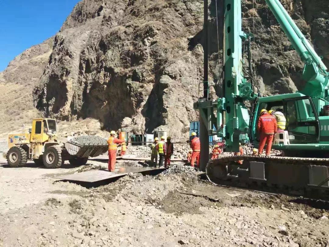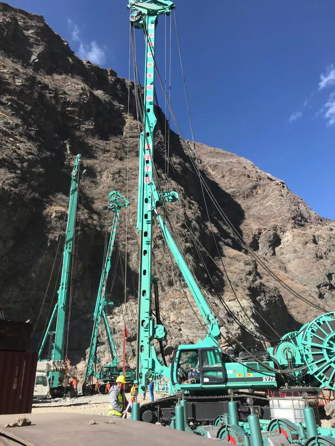 4臺(tái)振沖碎石樁專用設(shè)備SV70在拉哇工地現(xiàn)場(chǎng)