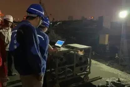 該工地48M以下均為沙層,適合金泰SG70抓斗直接成槽,目前SG70在場(chǎng)施工穩(wěn)定、效率高,平均2天可完成一副槽。上海隧道工程有限公司閔永良項(xiàng)目團(tuán)隊(duì)將金泰SG70成槽的20m/40m/66m深度進(jìn)行多次超聲波檢測(cè),將地下連續(xù)墻垂直精度控制在了1/1000以內(nèi)。該項(xiàng)目團(tuán)隊(duì)還使用了由上海工匠王峰研制的反力箱引拔器,降低了反力箱起拔過程中的安全隱患,提高了起拔成功率。