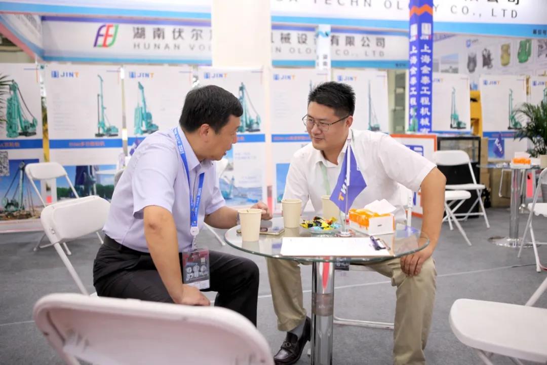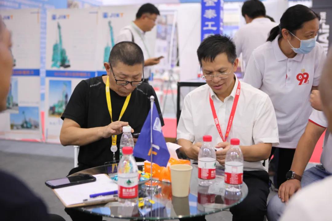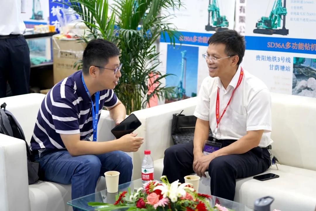會展期間,公司總經理黎隸萬、副總徐峰、徐建成、總工程師李道華等與行業(yè)協(xié)會專家、樁工機械制造廠商以及基礎施工企業(yè)用戶進行了多方交流。