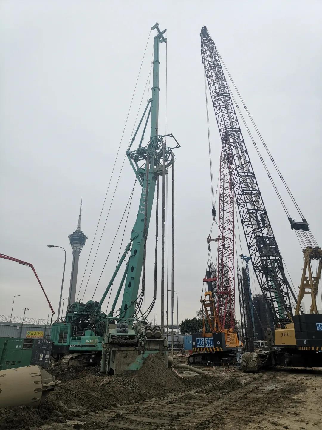 經(jīng)現(xiàn)場施工管理人員介紹:“臨近西灣湖景大馬路堤圍加固工程算得上是鋼筋混凝土地連墻教科書級工程,工地上可直面看到地連墻施工主流“抓銑”與“抓鉆銑”的施工工藝,在金泰SX系列銑槽機(jī)、SG系列成槽機(jī)以及SH系列旋挖鉆機(jī)的加持下,工程進(jìn)度穩(wěn)步向前,不出意外將與兄弟單位施工的粵澳新通道青茂口岸澳方聯(lián)檢大樓工地一樣提前完成施工。