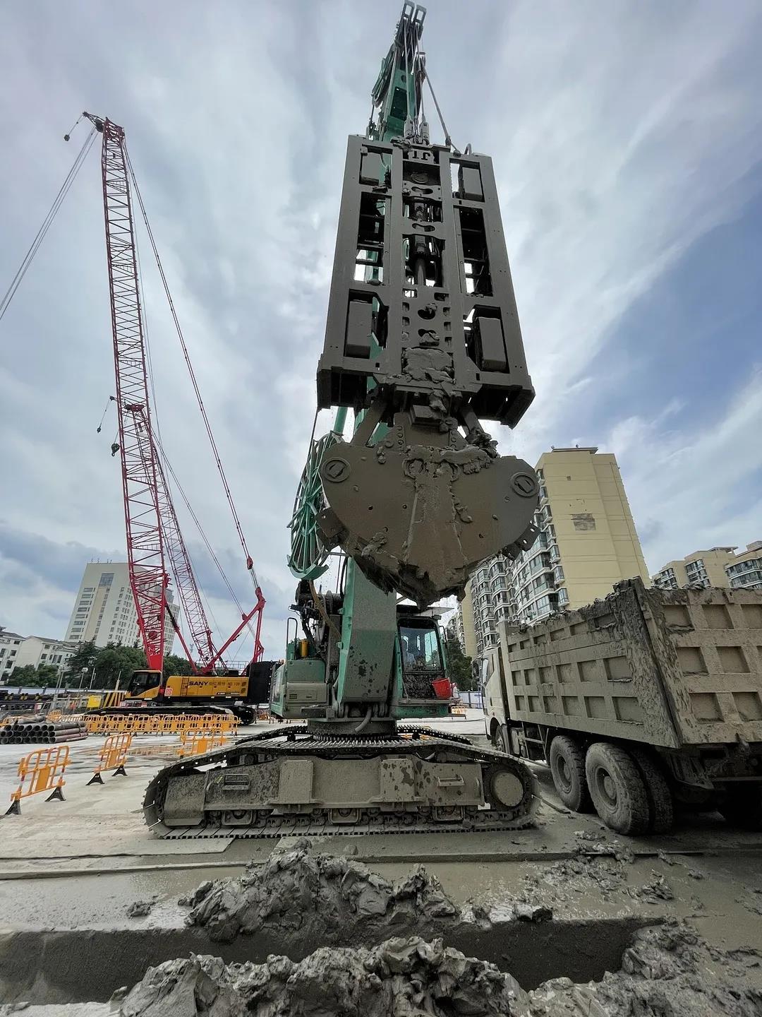 因?yàn)槠P(guān)系小編就不一一例舉了,在7好號(hào)線楊東路站的附近另有兩個(gè)站頭由金泰SG50B與SG60抓斗正在施工。