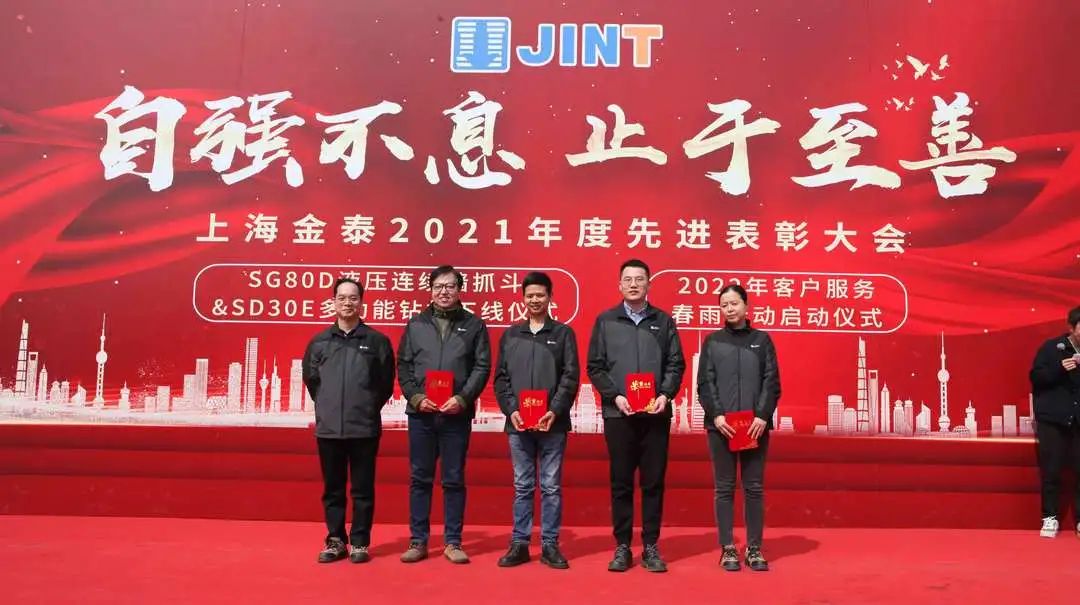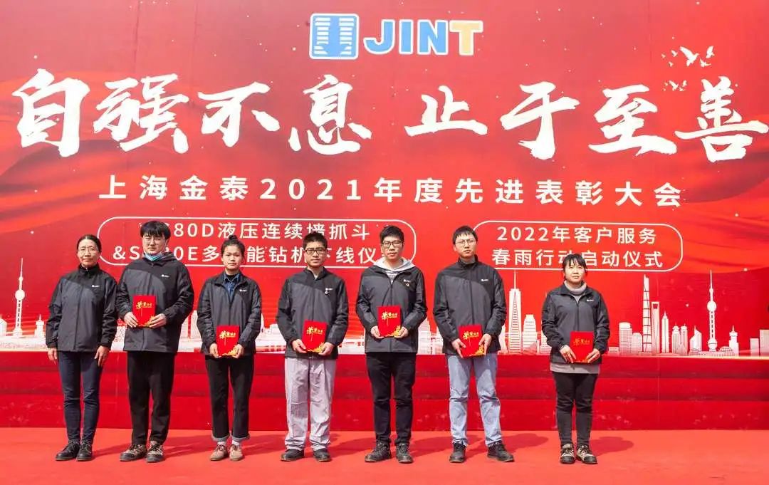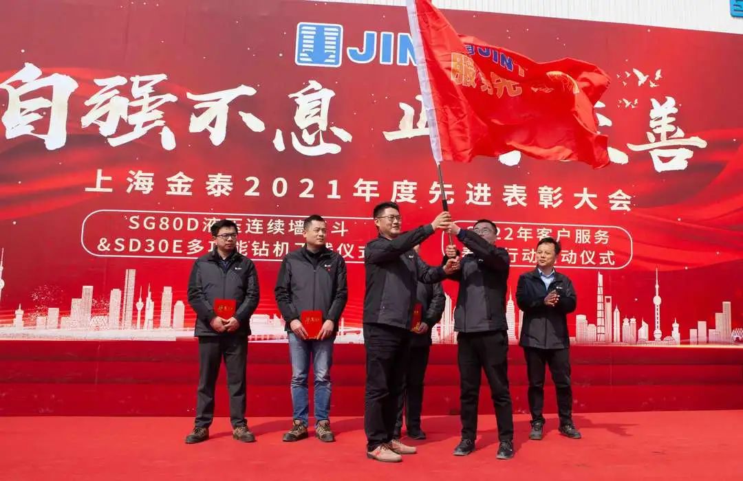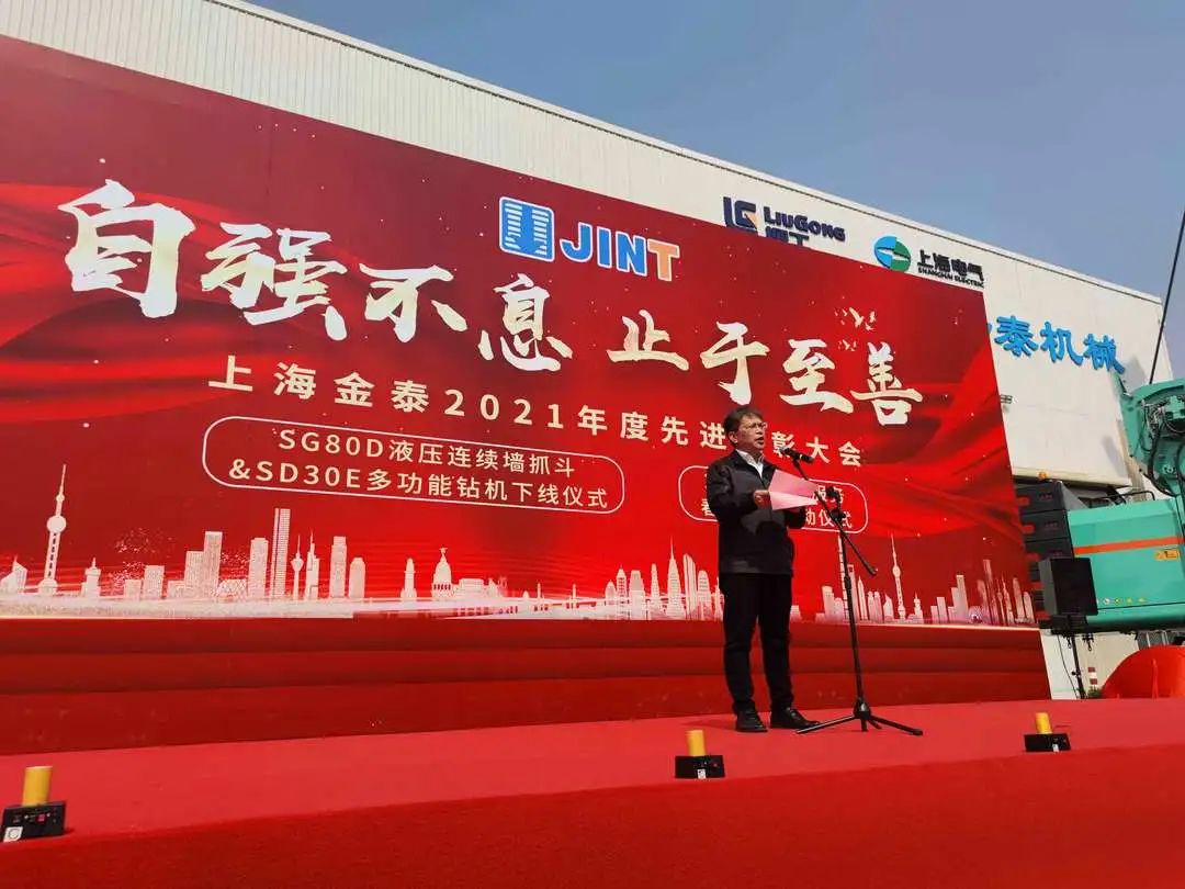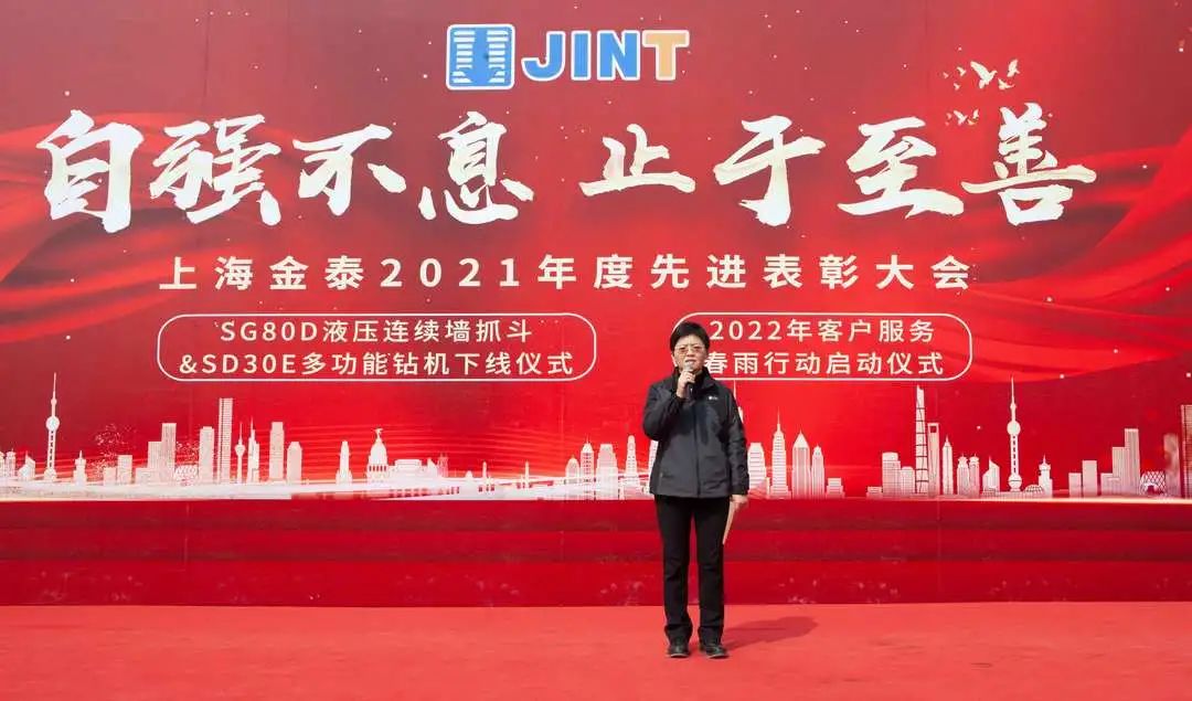 “下線!”“出發(fā)!”“勵志!” 3月2日,上海金泰SG80D液壓連續(xù)墻抓斗與SD30E多功能鉆機下線、2022年客戶服務(wù)春雨行動啟動儀式暨2021年度公司總結(jié)表彰大會隆重舉行。