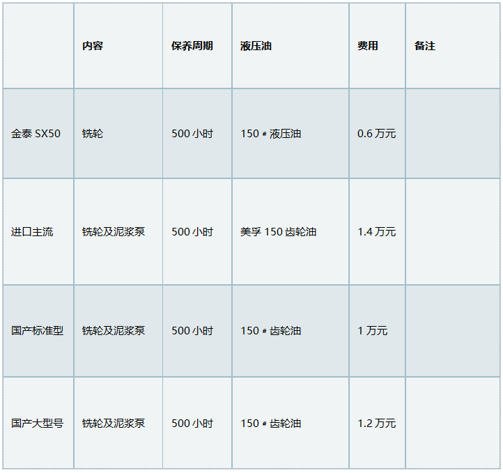 因金泰SX50氣舉反循環(huán)雙輪銑與泵吸雙輪銑結(jié)構(gòu)有著巨大差異,導(dǎo)致保養(yǎng)的費用存在巨大差值。泵吸雙輪銑除去與SX50氣舉雙輪銑同項銑輪保養(yǎng)外,另多出的泥漿泵與排渣軟管養(yǎng)護費用。其中光排渣軟管保養(yǎng)付費用每兩年就比SX50雙輪銑多出90萬以上。反觀金泰SX50雙輪銑除銑輪做保養(yǎng)外,其它養(yǎng)護費用幾乎為“零”。