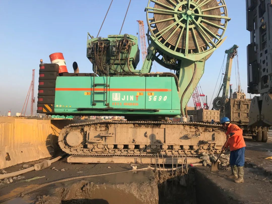 終于完成了。耗時3年半,金泰4臺雙輪銑和20臺地連墻液壓抓斗先后在南京江北新區(qū)地下空間工程中分別參與8個地質(zhì)最為復(fù)雜的區(qū)工段,承擔(dān)主要施工任務(wù)。在高峰期間金泰三大主力產(chǎn)品旋挖、抓斗、雙輪銑共有20多臺金泰設(shè)備同時進(jìn)行施工,是項(xiàng)目的“絕對主力軍設(shè)備”。