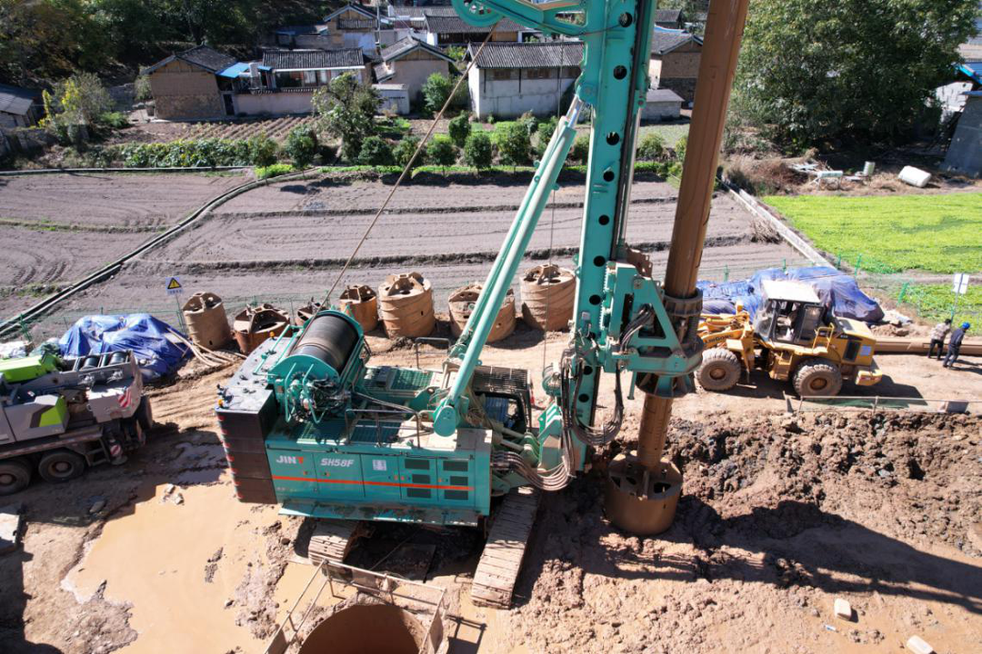 ? ? ? ?近日,金泰國(guó)四新產(chǎn)品SH58F多功能旋挖鉆首次亮相云南麗江市玉維高速公路段-黎明大橋樁基礎(chǔ)施工。該項(xiàng)目鉆孔直徑大,深度深、地層硬、含豐富沙層、易塌孔、工藝復(fù)雜、工期緊,施工具有一定難度。金泰國(guó)四新設(shè)備SH58F現(xiàn)已完成第六根深度為82m超深鉆孔灌注樁,施工速度快,成孔質(zhì)量高,獲承建方高度認(rèn)可。